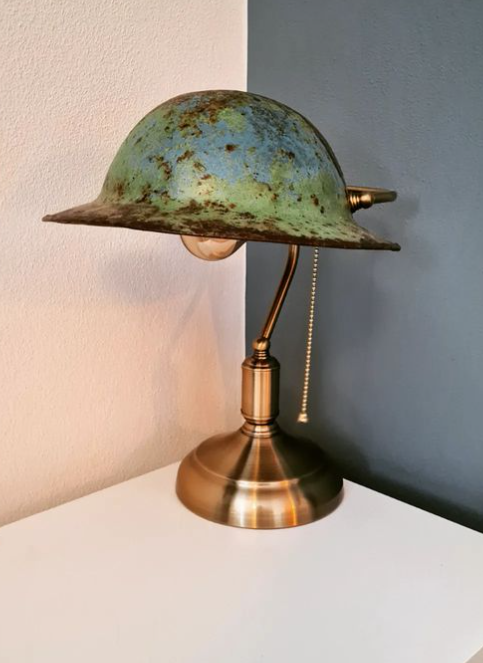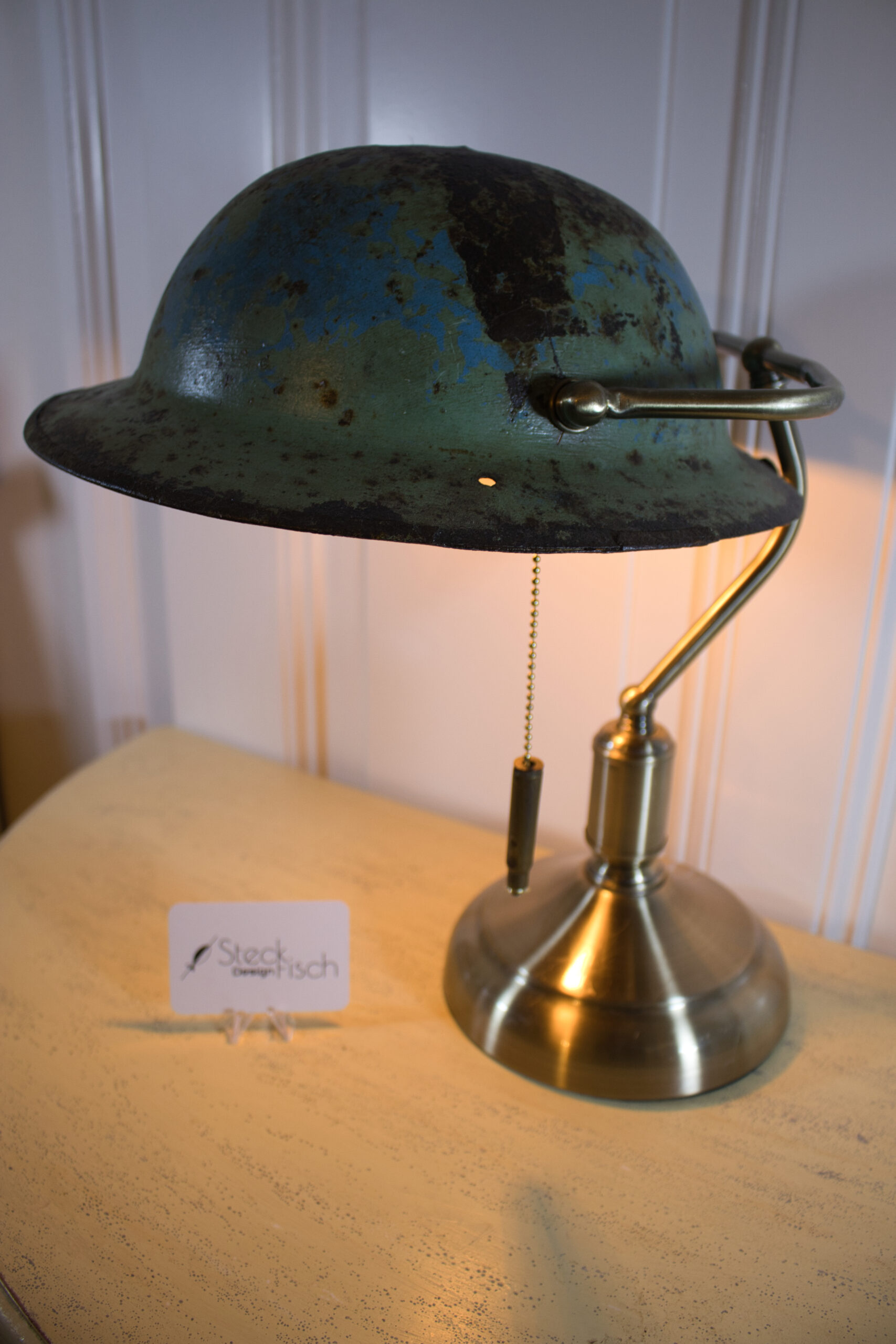 Ein Hauch Geschichte in Blaugrün – die Brodie HelmLampe von Steckfisch Design