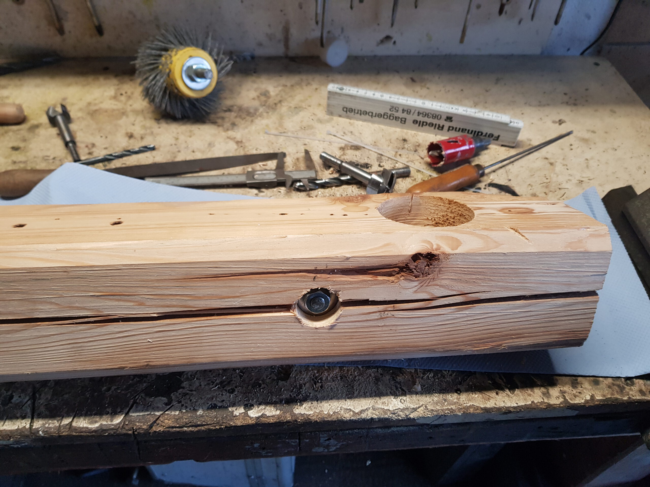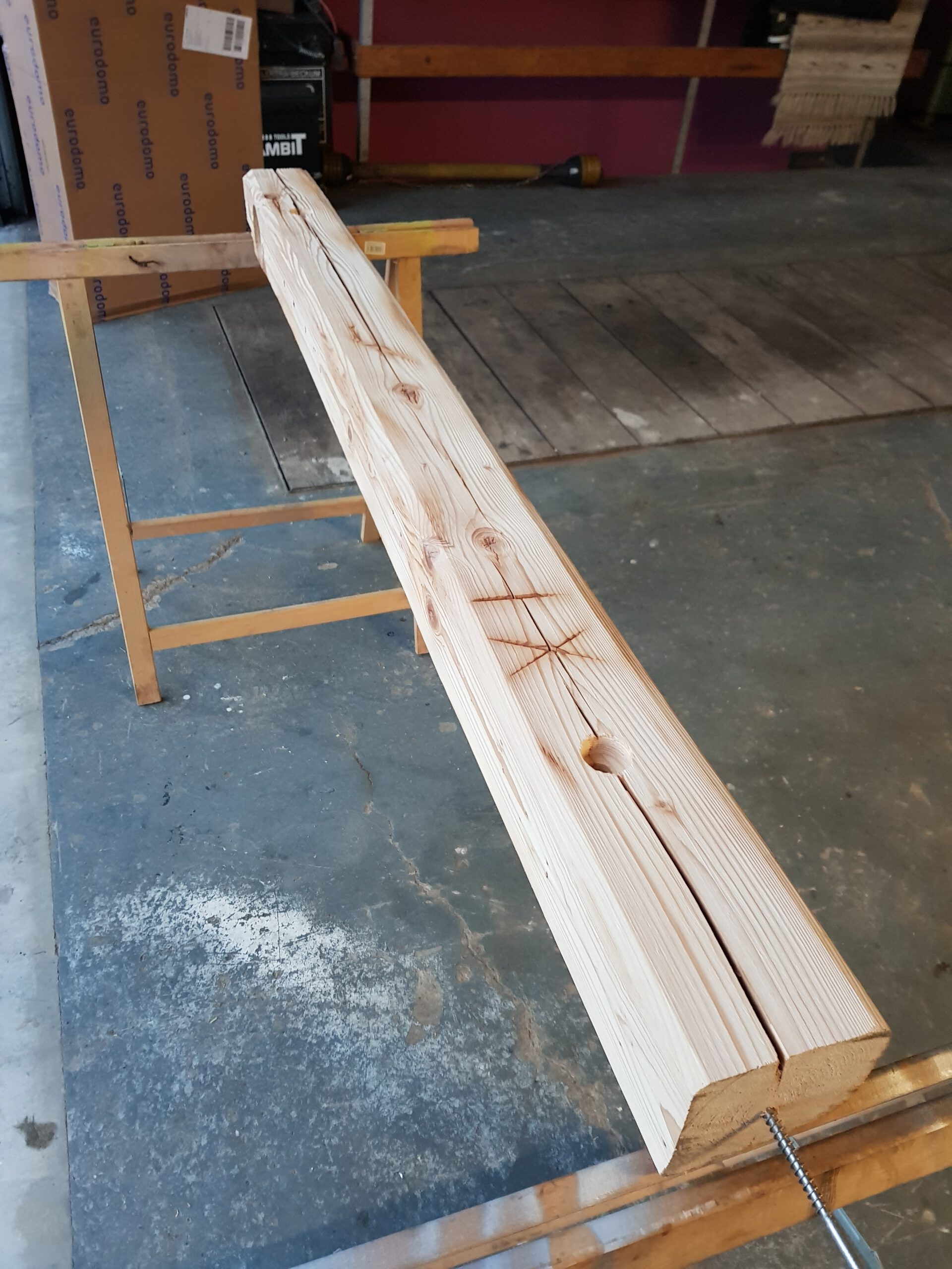 Diese Garderobenablage entstand aus einem jahrzehntealten Holzbalken – mit sichtbaren Gebrauchsspuren, Rissen und Astlöchern, die seine Geschichte erzählen.