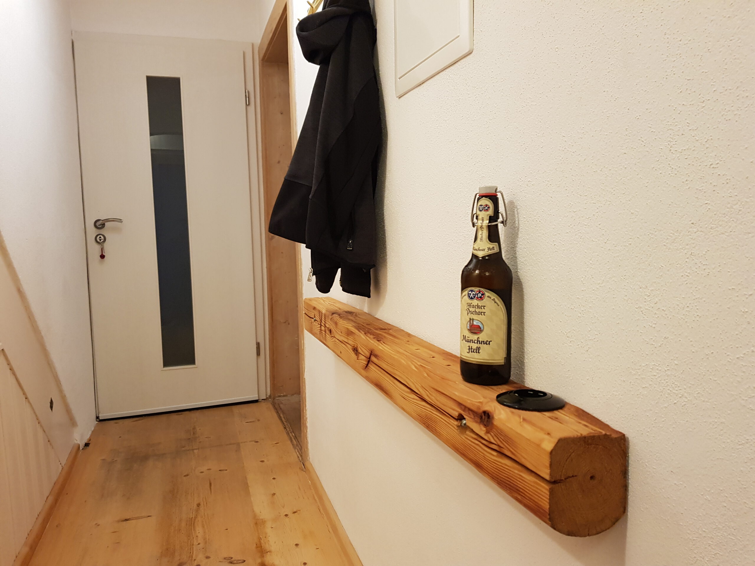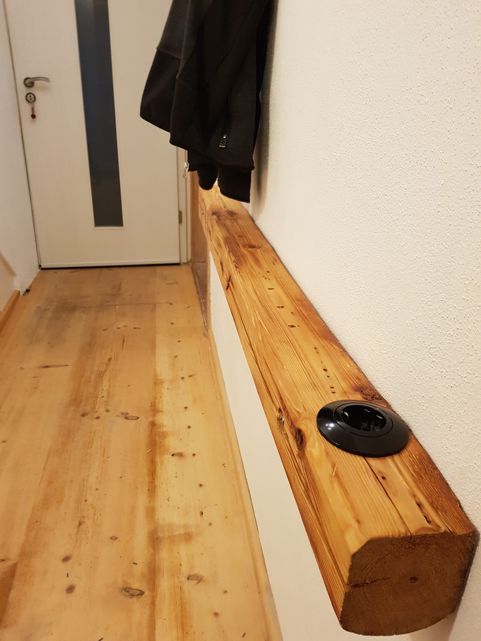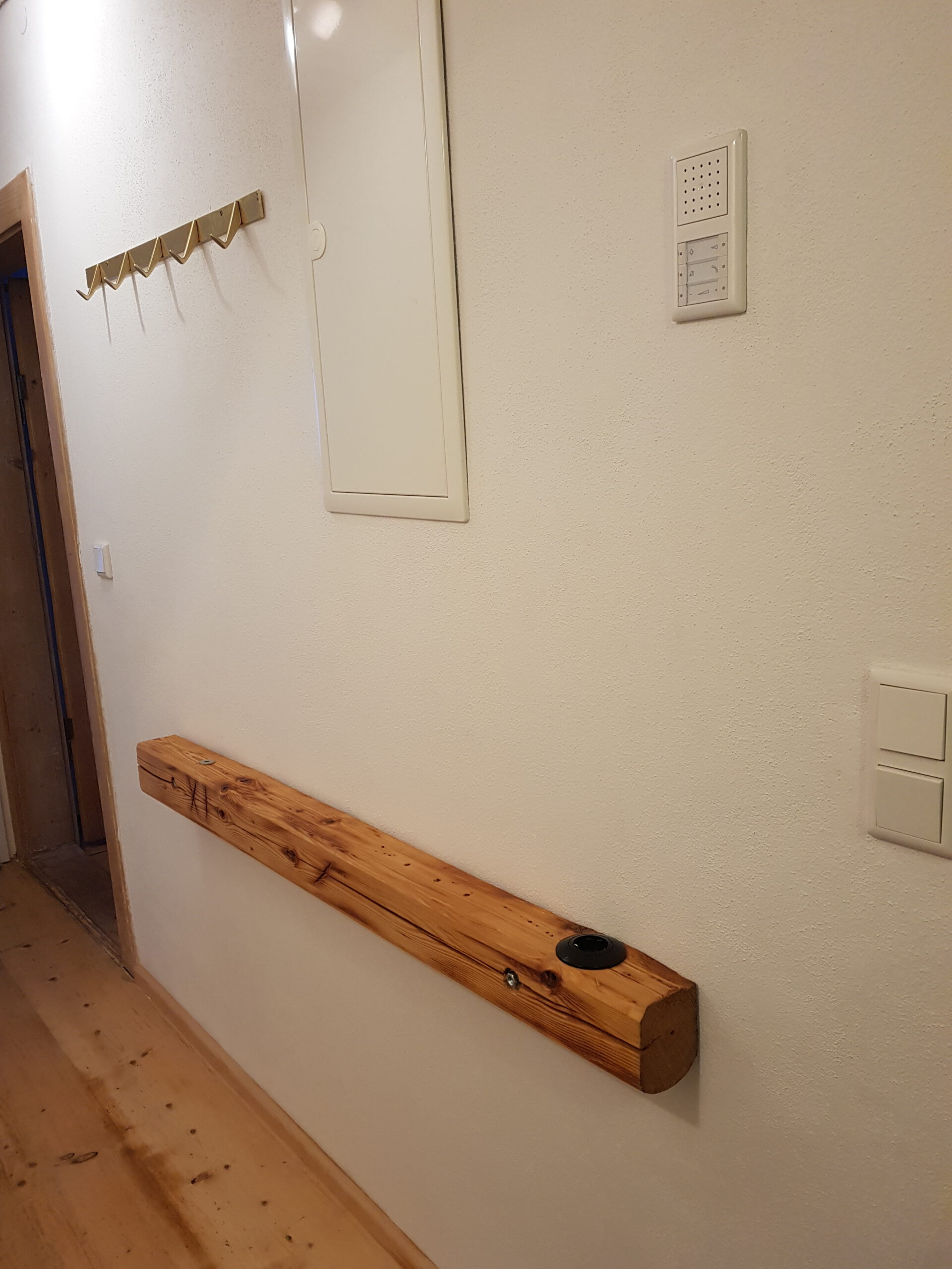 Garderoben-Ablage mit Geschichte – aus altem Holzbalken & Bakelit-Charme