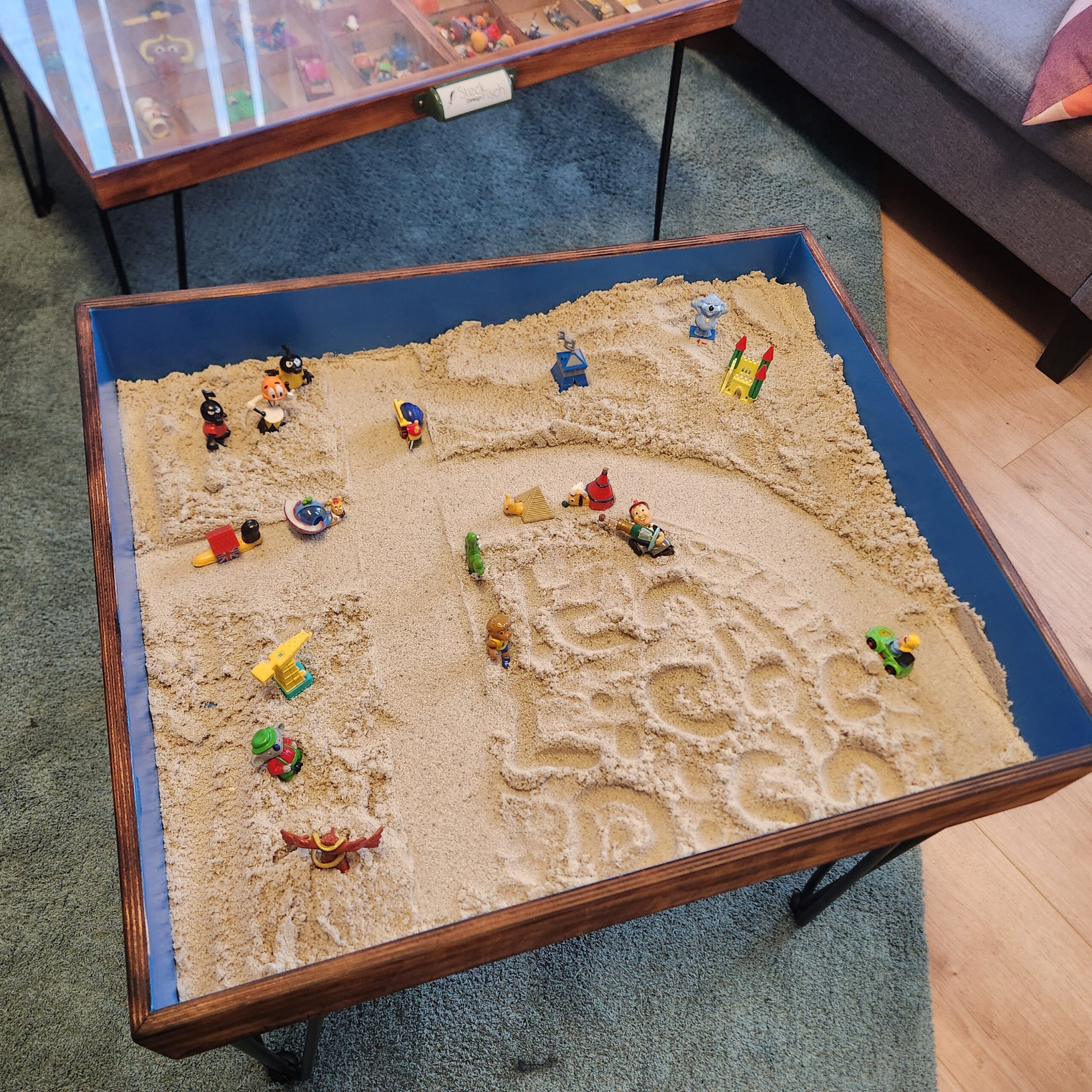 Dieser handgefertigte Therapie-Sandkasten wurde Speziell für eine kinderpsychologische Praxis entwickelt – eignet sich aber genauso ideal für zu Hause.